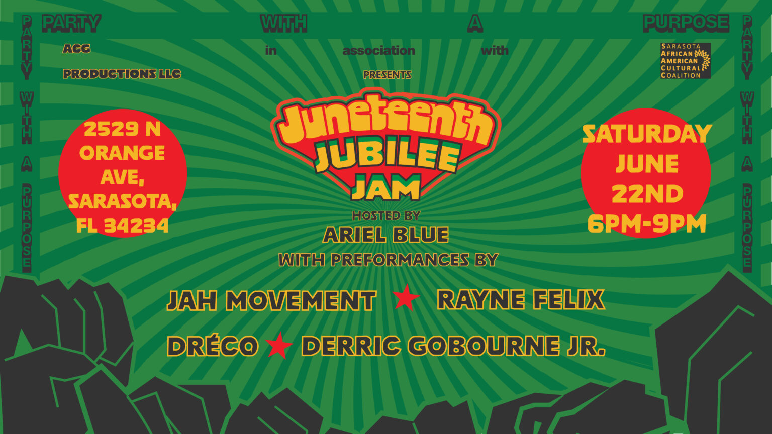 Juneteenth Jubilee Jam is a Musical Festival in my hometown of Sarasota Florida that I worked on with my family to create. I had full creative